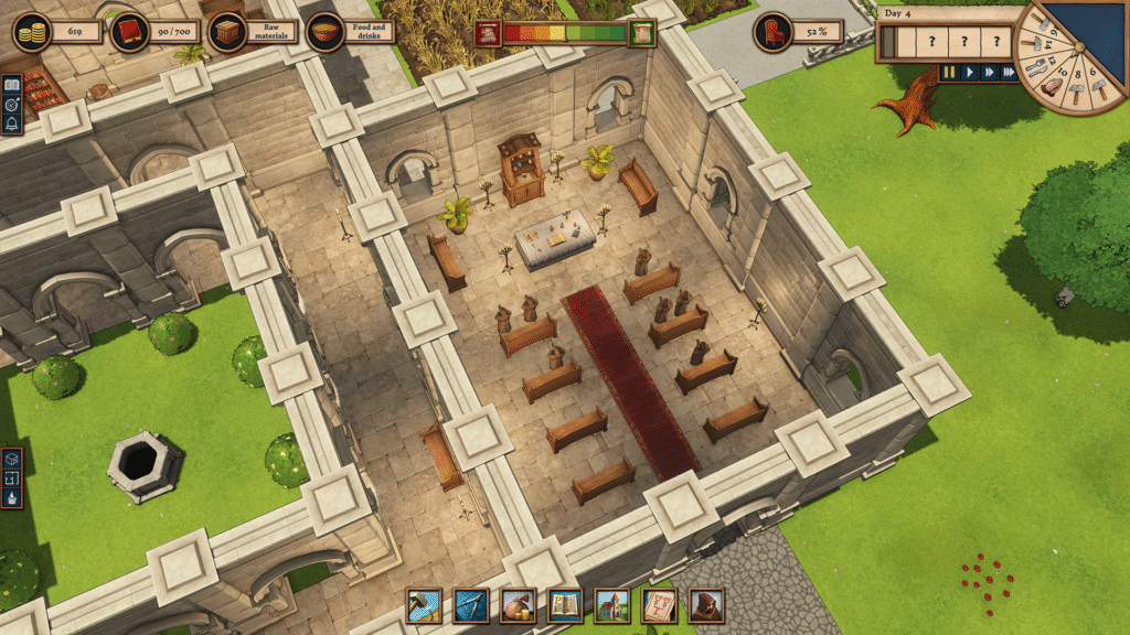 - Manage your monks’ daily schedule between prayer, work, and rest.