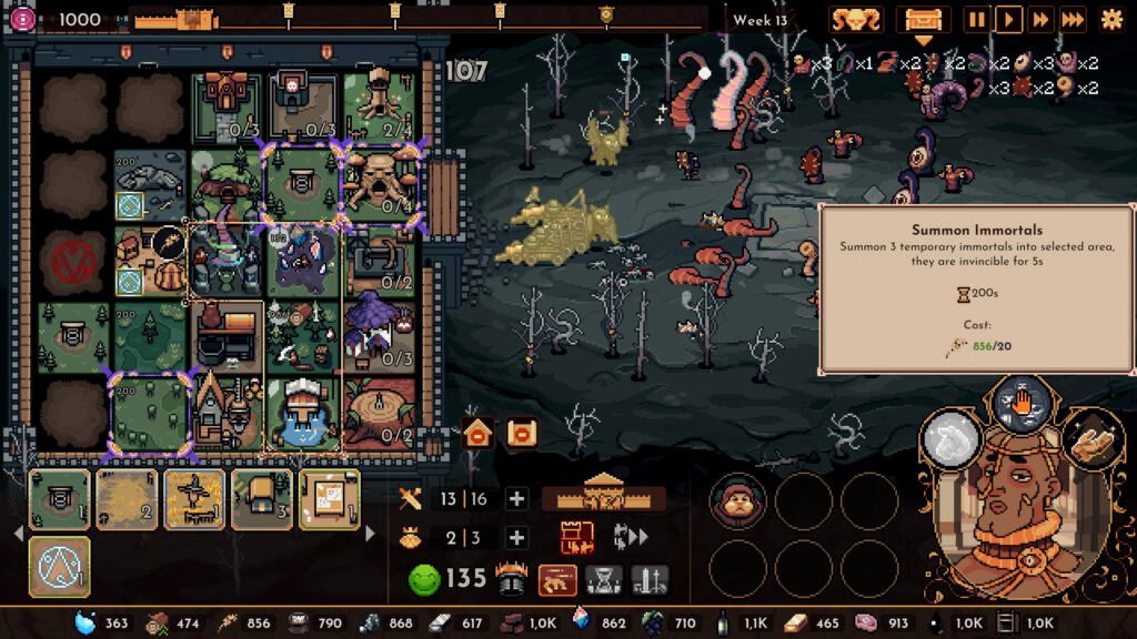 Give praise to Xerxes, The Glass Cannon King, whose demolishing force explodes enemy assaults at the cost of fragility. The Ephemeral Existence ability grants amplified damage to the detriment of a 90% health penalty. Cast Sands of Time to reset all unit ability cooldowns, teleport Immortals to target areas, and raise the most formidable yet delicate army.